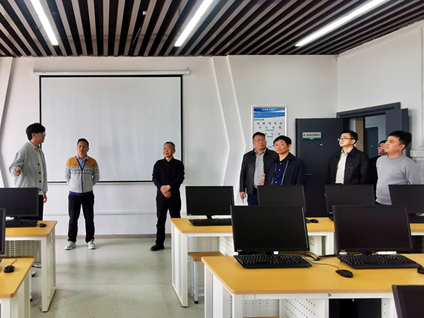 拜访领导一行参观了新一代信息技术产教融合实训基地大数据及人工智能实训中心、网络数通实训中心及研讨展示中心,详细分析新一代信息技术产业学院的建设情况。参访过程中,智能与电气工程学院院长曹祺介绍了学院整体开展情况以及近年来的校企合作成果。